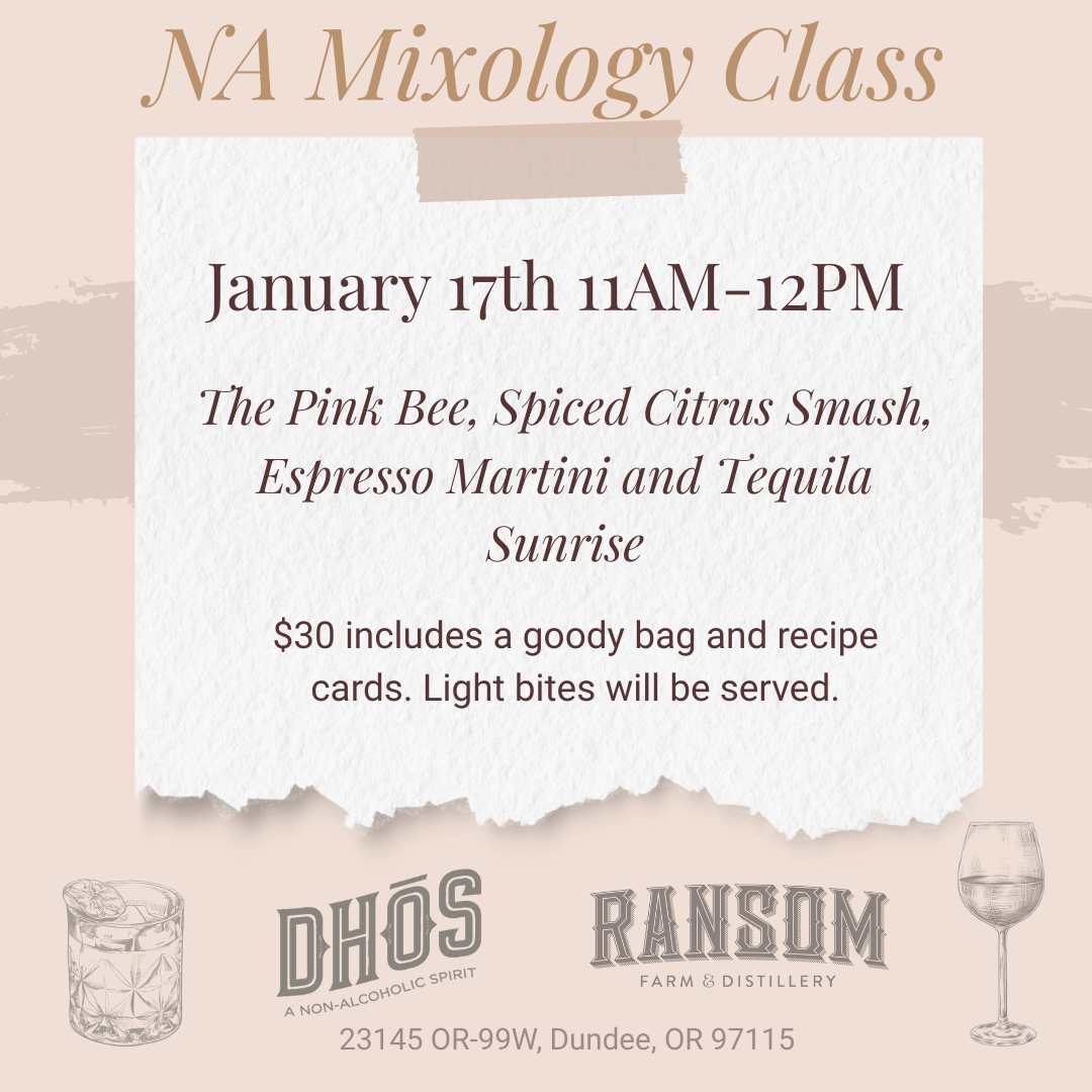 For just $30, enjoy an immersive experience that includes a goody bag, recipe cards, and light bites. Learn to crafted Mocktail: DHOS The Pink Bee, Spiced Citrus Smash, Espresso Martini and Tequila Sunrise.